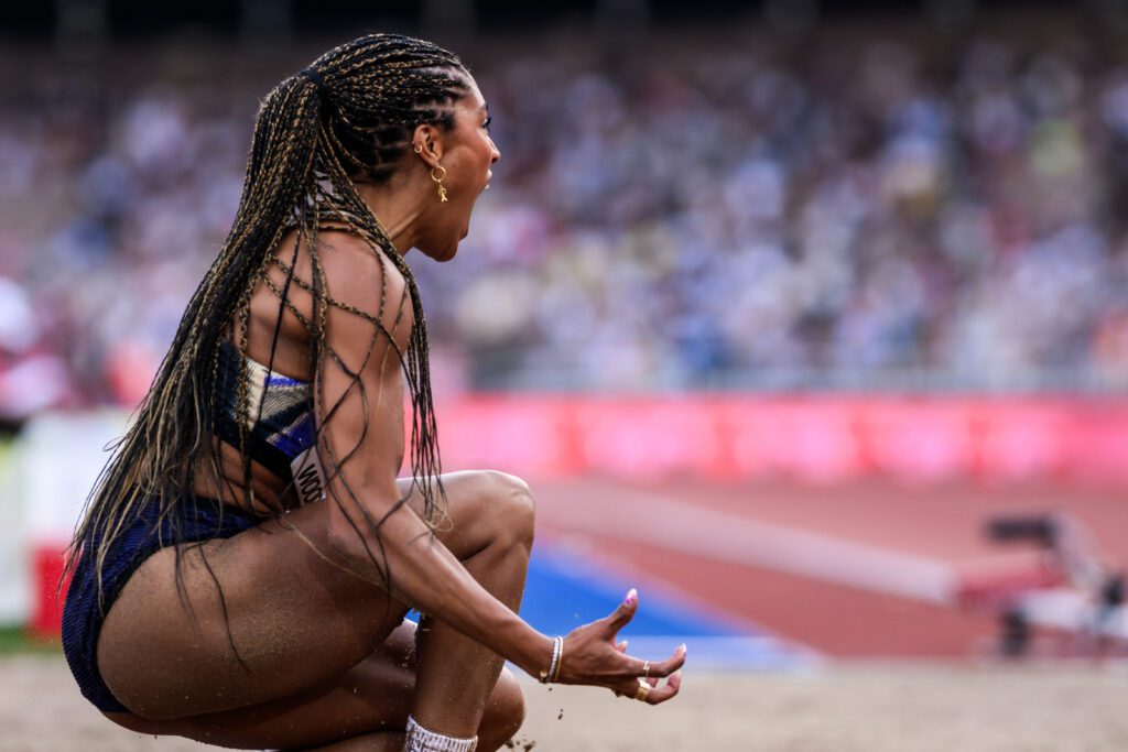 European indoor champion Larissa Iapichino of Italy came closest with 6.90m in the third round and the USA’s Jasmin Moore was the next best with 6.76m.