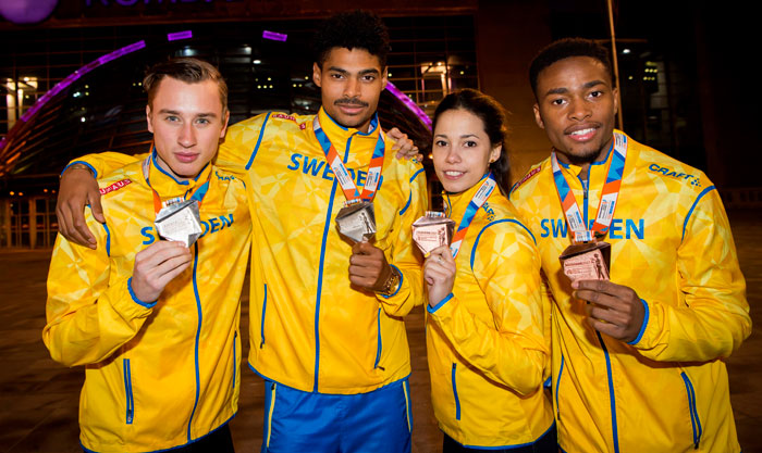 Lorenzo NesiPicture: From left Kalle Berglund, Michel Tornéus, Angelica Bengtsson and Austin Hamilton. Photo: Deca Text&Bild Sweden’s European Indoor medalists in Belgrade, 3–5 March 2017 Silver M 1500 m Kalle Berglund 3:45.56 M Long Jump Michel Tornéus 8.08 BronzeW Pole Vault Angelica Bengtsson 4.55M 60 m Austin Hamilton 6.63